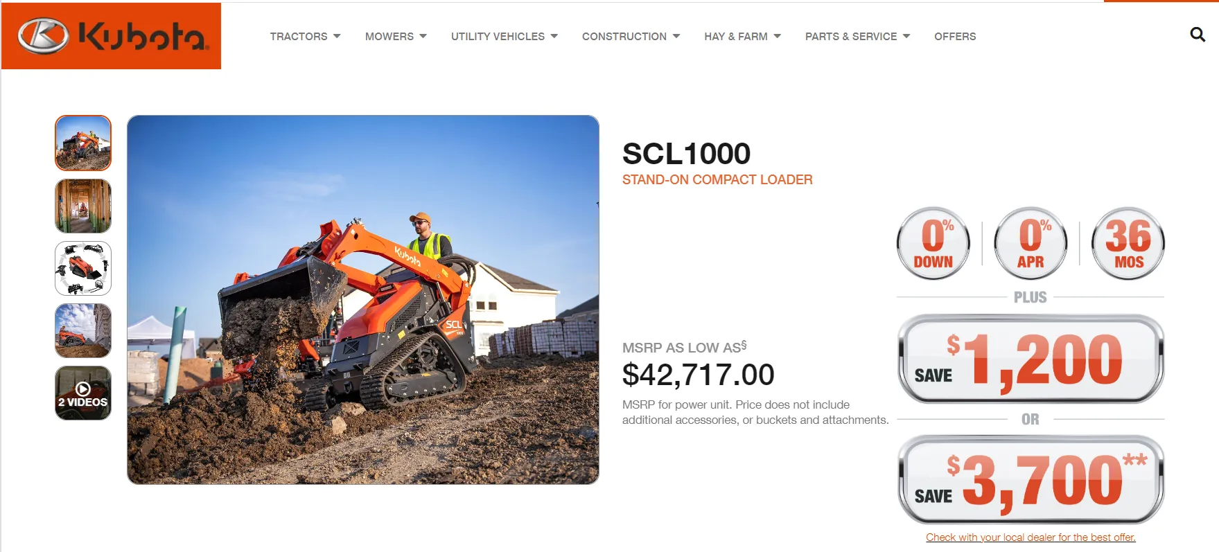 | Kubota | SCL1000 | 1,000 lbs | 24.8 HP | 15.0 GPM | Price on Request | Engine reliability, low center of gravity design |