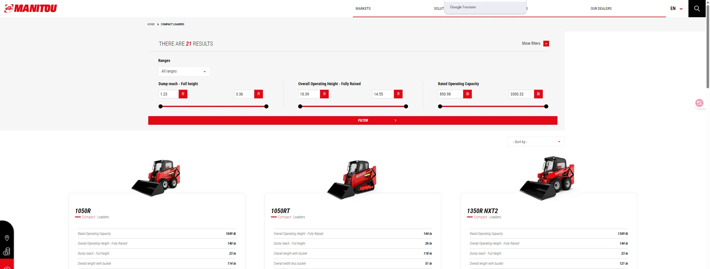 Manitou1050R1,04935.714.5Request quoteLoad capacity, heavy-duty operations