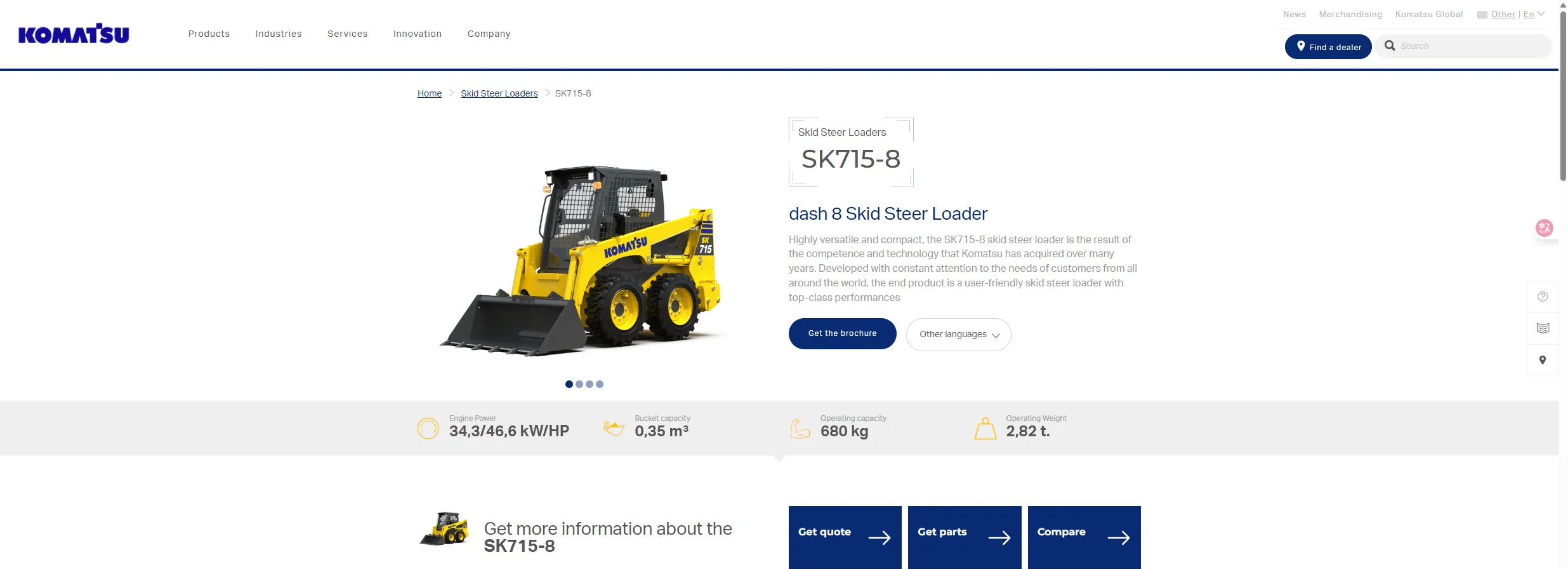 • Company Background: Komatsu, founded in 1921 in Japan, is a latecomer to compact skid steers but leverages heavy equipment expertise for efficient models.